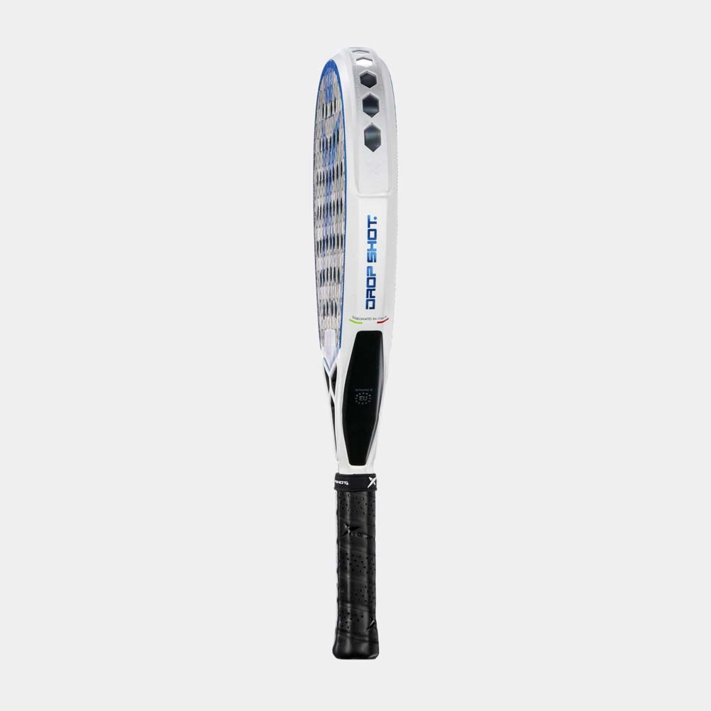 La Drop Shot Jon Sanz Axion Attack 1.5 es una pala de forma lágrima y balance medio-alto, creada junto a Jon Sanz para jugadores avanzados/profesionales de perfil ofensivo. Ofrece potencia explosiva con buen control, gracias a su núcleo de goma EVA Pro, caras en carbono 12K y marco de carbono reforzado, que aportan gran salida de bola, solidez y durabilidad. Su superficie rugosa 3D mejora los efectos en golpes liftados y cortados, y su diseño moderno con detalles personalizados refleja el estilo agresivo del jugador navarro.
