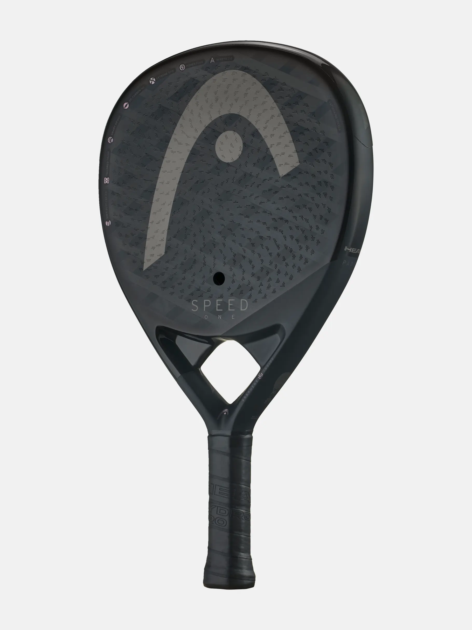 La HEAD SPEED ONE es una pala lágrima ligera (345 g) pensada para jugadores avanzados que quieren acelerar el juego con una mezcla muy sólida de potencia, control y manejabilidad. Incorpora la tecnologÃÂa ONE y una superficie de golpeo en carbono 2D, que le dan una rigidez extra, durabilidad superior y potencia explosiva. La nueva Auxetic 2.0 (en puente y empuñadura) mejora brutalmente el tacto y la sensación en cada impacto, mientras que la goma Power Foam responde rápido en golpes ofensivos. La cara con acabado Extreme Spin añade más agarre de pelota para cargar de efecto tus golpes, y el Soft Butt Cap 2.0 en el final del grip aporta mayor comodidad, absorbe vibraciones y cuida la muñeca. Todo esto en un diseño moderno y premium con acabados mate y brillo.